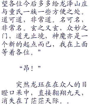 两人的争斗丝毫不下于龙珏与尹仲的比试,不过可惜的是,他们只有武功,因为龙腾也只有功力,不会法术。