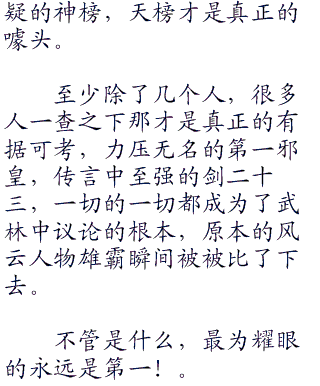 “三绝归一元,天剑魔刀诀。真武十强道,至强二十三!”天榜