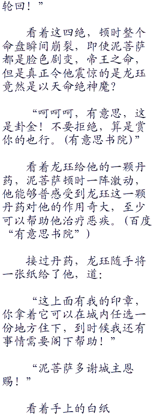 “泥菩萨,你说的这话有人已经说过了,成也风云,败也风云,难道我雄霸真的一生都要被风云所致,但是我不信天命不可为,我要逆天改命!”