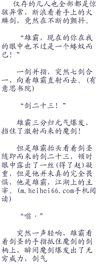 只见剑圣剑气冲霄,伴随着七把魔剑的剑气,竟然直接冲破了蚩龙等人刀气的压制,剑气之强,所有人都是震惊的看着剑圣,这就是剑二十三,所有人都是不敢相信!