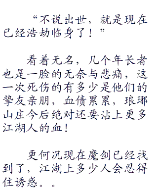 当他知道剑圣去了琅琊山庄的时候就知道有大事要发生,接着先是剑圣以剑魂融入了七把魔剑之中,又是武林中人齐齐前去琅琊城。
