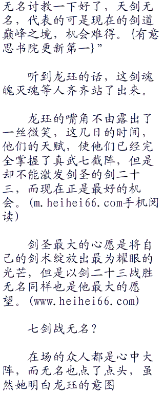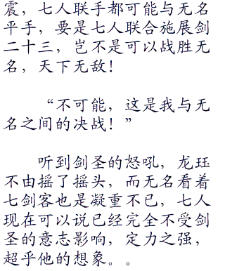 “看来老朋友这些年进步不小啊。无名原本以为还可以在剑招上占一些优势,现在看来却是奢望了!”