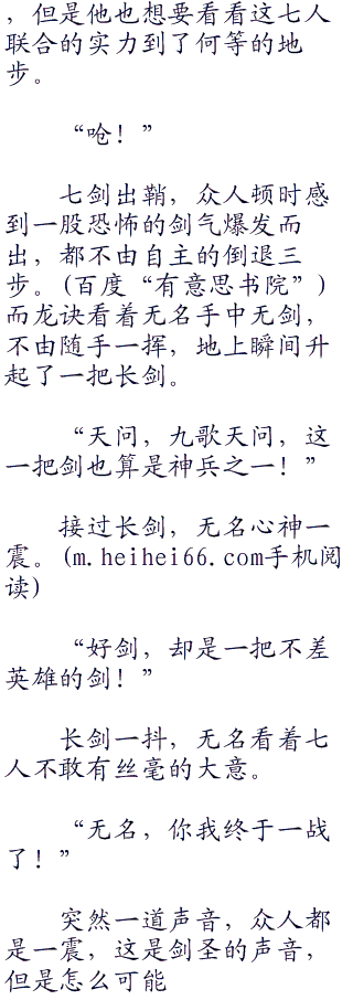 听到无名的话,众人都是心中一震,什么意思?难道天剑无名还不是眼前之人的对手!