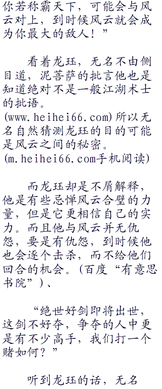 “我来这里自然是想为这一把剑找到一个好主人,但是你来干什么?你好像不需要绝世好剑!”