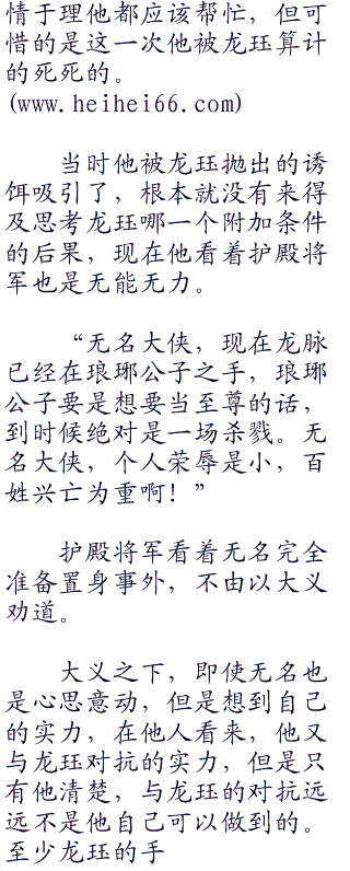 看着无名,剩下的人也是好奇的看着无名,不知道无名会作何选择。是遵守与龙珏的约定不插手,还是遵循侠义道出手救步惊云。