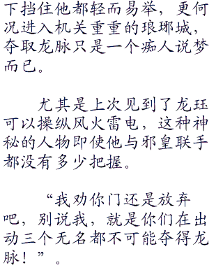 “善与恶也往往在一念之间,价值也是一样,在步惊云的眼中,这一个女人是一个承诺而已。他是为了一个承诺而放下了一切,这么叽叽喳喳的女人,救不如不救、因为她的存在只会成为羁绊,成为一个致命的弱点!”