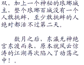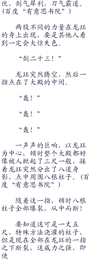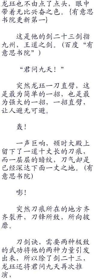 剑气纵横,剑影重重,最后龙珏跃起一剑直刺一根一丈五尺的柱子。
