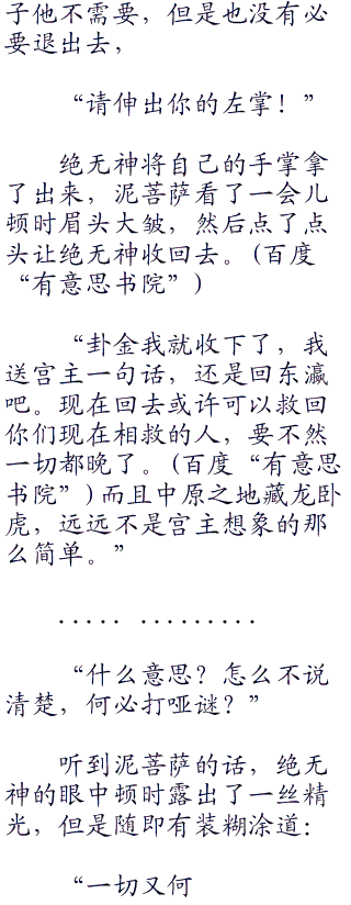 功德如何赚?他自然不能,但是世人都想知道自己的天命,泥菩萨之名天下闻名,所以龙珏就让泥菩萨立下规矩:哪一个做的善事大,他就给谁算命,以之功德相抵,当然最后还有他三钱银子的卦金。