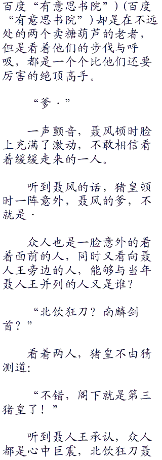 刚刚第三猪皇一句话没有说,此时听到第三猪皇的话,聂风不由一阵疑惑与好奇,不明白的看着猪皇。