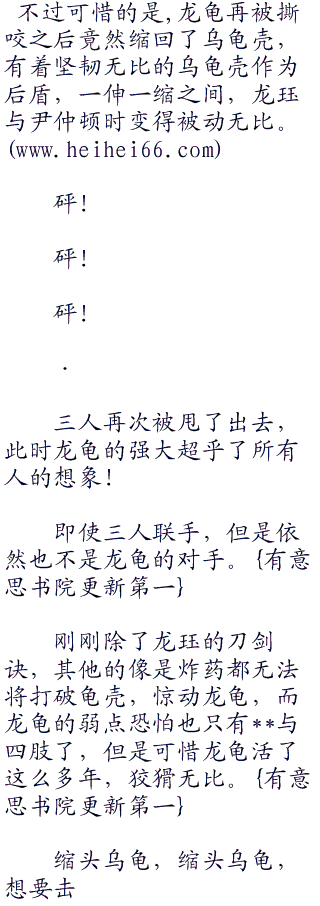 一声龙吟,突然龙龟的口中吐出了炽热的火焰,在空中的龙珏三人齐齐倒飞了出去。