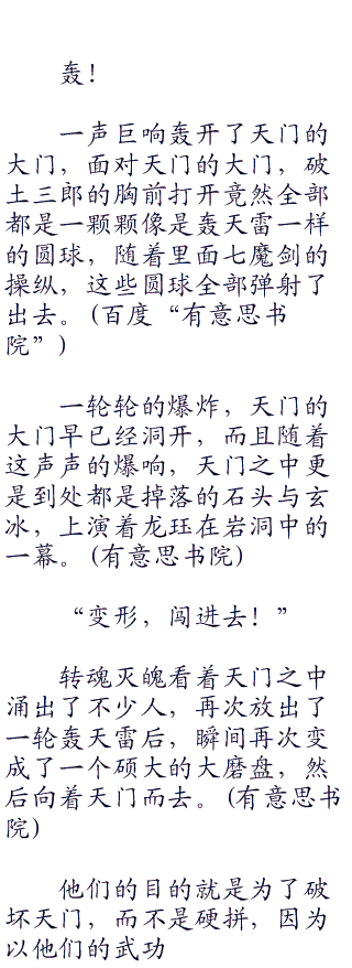 这就是七魔剑驾驭破土七郎跳跃而行的结果,超级破土三郎的重量,每一次跳跃对于山内的天门世界都是一场地震。