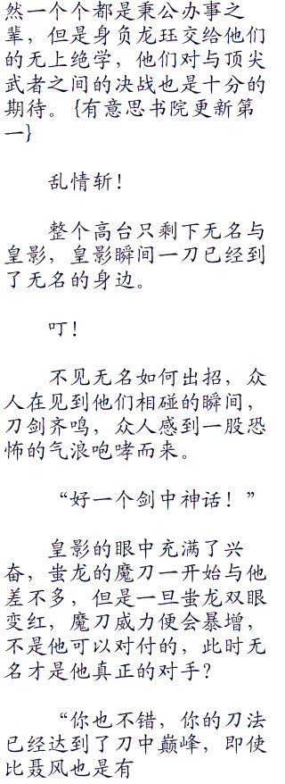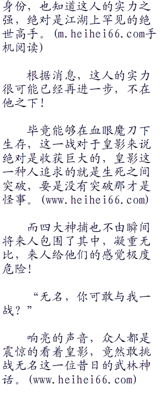 而无名待人处事无疑就宽容了很多,甚至经常帮助一些武林中的侠客逃脱罪责,他们都知道要不是无名,在场的又有几人可以站在这里。不少宗门肯定都要被灭门!