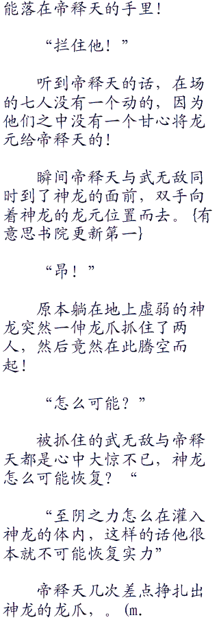 随着随着帝释天的一声杀,众人绥化的神剑向着神龙而去,最有三丈的巨剑好像正好可以割掉龙头一般!