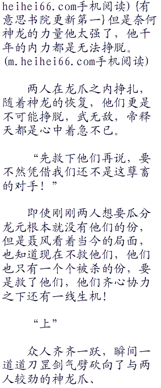 一道鬼魅般的身影险之又险的将步惊云带出了神龙的爪下,此时众人也来不及疑惑聂风为什么回来这里,但是一个个都惊骇的看着这一头畜生,实力太恐怖了!
