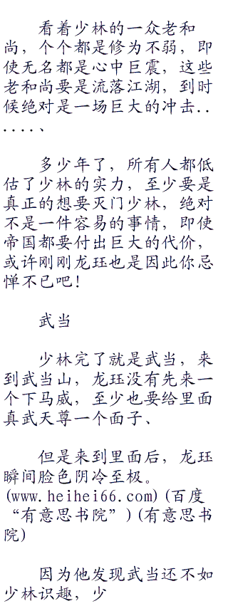 甚至哪一个老和尚,已经到了武无敌的程度,虽然仅仅只是内力,但是少林武功博大精深,武功即使不比武无敌,但是绝对是超过了一般的绝世高手之列。