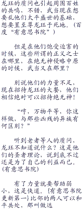 他们没有想到武当到了他们这一代迎来的竟然是灭门的结局,但是这怨的了龙珏么?