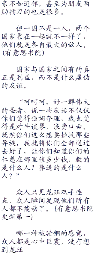 “九州之内奉我为神,九州之外视我为魔。其一不过一个道理而已,非我族类,其心必异!”
