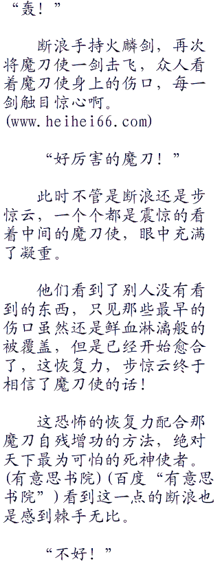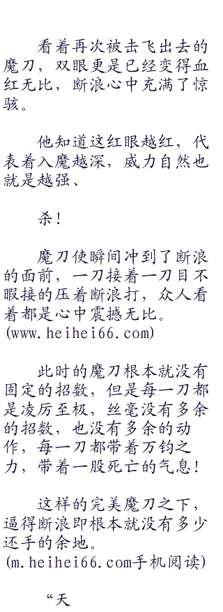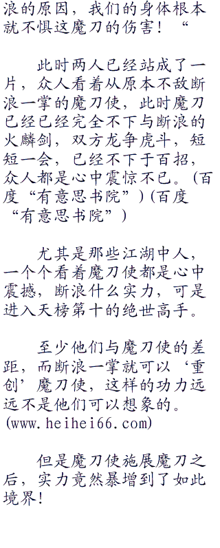 断浪没有出剑,即使他在愤怒也明白这是什么地方,在这里杀魔刀使,绝对是找死的行为、