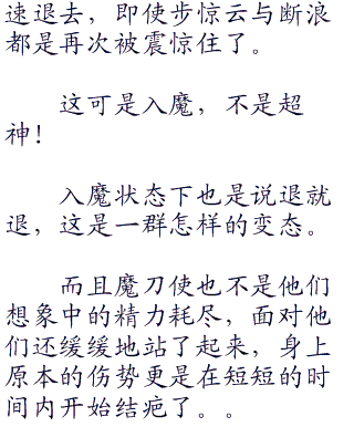 就像是现在,在别人看来,那是已经伤的不能在重了,但是这对他们而言仅仅只是稍微伤筋动骨而已,一刻钟的时间就会恢复如初,更何况这还是他们没有施展魔刀的情况。
