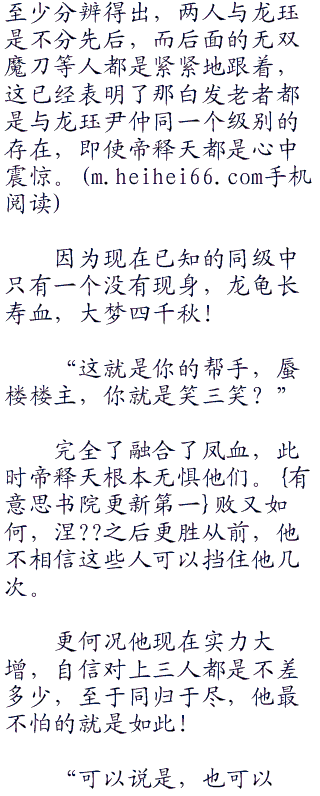 风云,破军,断浪等人看着水神老祖的样子,一个个都是心中大震,水神老祖的实力他们虽然没有比过,但是当时他们就知道水神老祖的实力在他们之上,更何况经过了那龙血的洗礼,实力定然暴增、