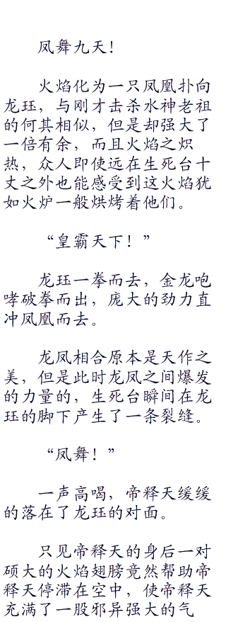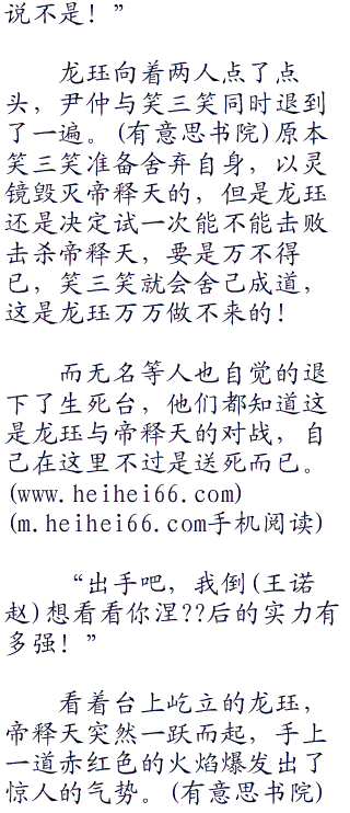 一个是天地至尊,天下共主,两人的决战他们都知道其中代表的意义,生死台上生死见,活下来的那人将会成为整个天下的主宰。