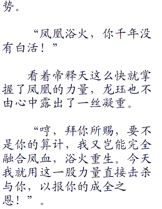 知道水神老祖得到神龙的一滴心血,众人之间帝释天的身后突然飞出了一只凤凰,向着水神老祖而去。