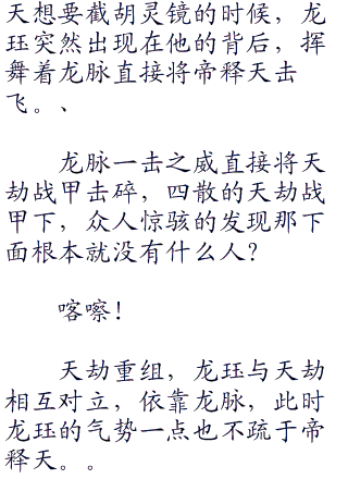 这样即使帝释天不死也只能附身在天劫之上,昔日铁狂屠被困在天劫之中,要是帝释天附在天劫之中,那么绝对好玩!