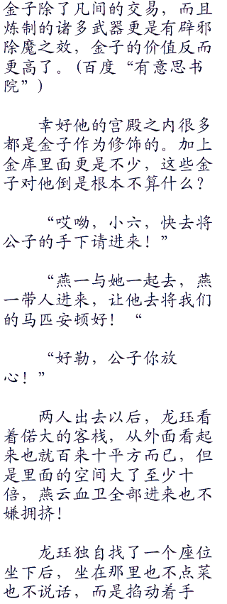 龙珏原本以为到了修仙世界,金子也就没有用了,但是没有想到的是,这个世界也需要金子,而且价值更大、