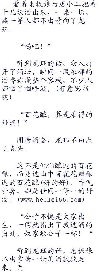 “你就是老板娘,我们从东面而来,准备去南疆的。现在天黑了,听说这里晚上不太平,所以我等今晚准备借宿一宿,不知道可否行个方便!”
