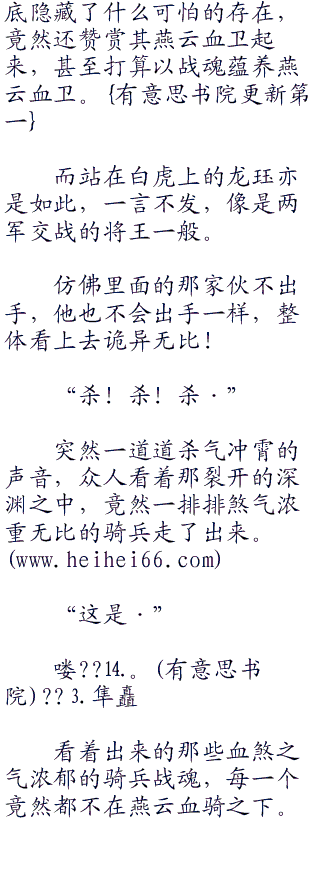至于杀戮的疲惫,对于燕云血骑而言,即使杀上三天三夜也不会有事。更何况一到天明,这些血煞战魂也自会隐去!