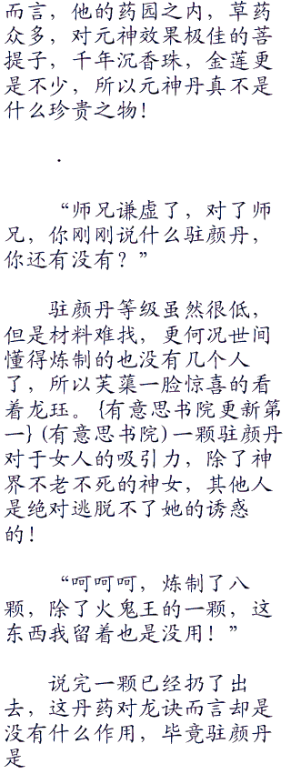 加上以前他们天墉城也就是三流修炼门派而已,炼丹之法虽然不少,药材却是稀少,底蕴不足。而且门内修炼的功法都是剑仙之道,功法霸道,根本就没有人可修炼炼丹之道,唯一的丹炉都在剑阁收藏者。