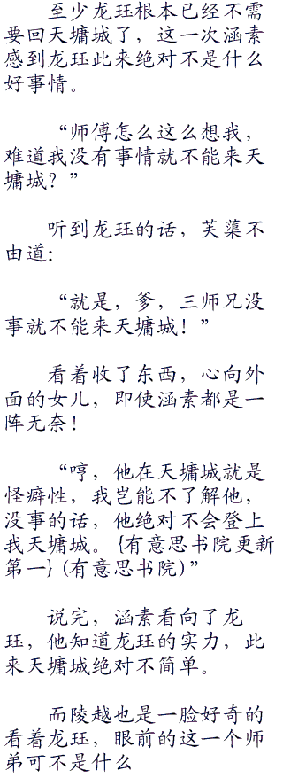 对涵素,他给予充分的肯定,但是那些弟子就不一样了。他在天墉城的那几年都是一人苦修,与他们也没有见过几次面,龙珏自然不会与他们一起套交情。