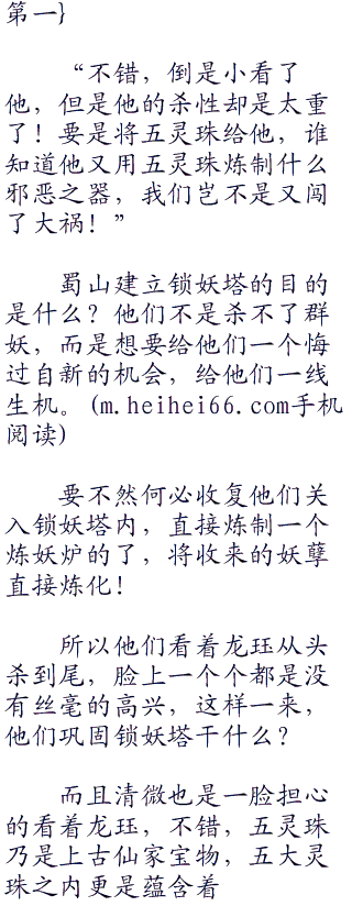 而且消灭了锁妖塔内的妖魔,这样消灭邪剑仙与修复锁妖塔的事情,孰轻孰重,他们五个老头自然会将天平上的砝码放在邪剑仙的一边。
