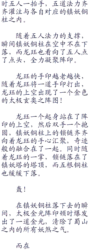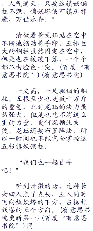 清微等人已经迫不及待的想要看看龙珏所说的镇妖铜柱如何厉害了?毕竟这可是关系着他们蜀山的命脉之事!