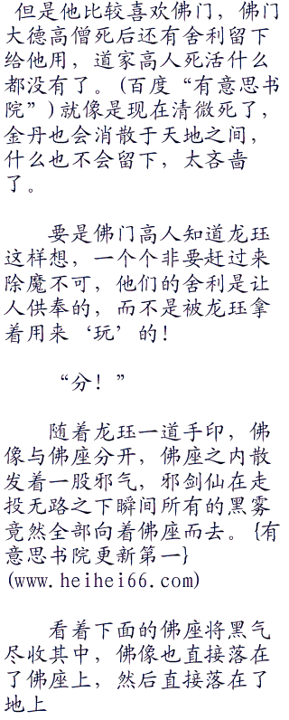 龙珏手上掐动着佛门九字咒印的手势,随着龙珏的第一个手势完成,瞬间那佛像竟然升起在了空中。
