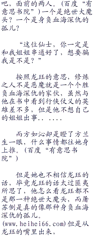 “残忍?这就是强者的世界,世人都道神仙好,但是不知道仙神也是一样,稍不留意就会死于非命。与其每天在无尽的寂寞中修炼,还不如无忧无虑,开开心心的做一个平通百姓!”、