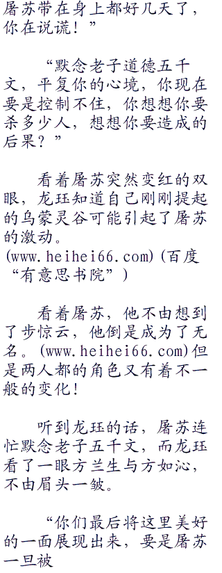 “我与屠苏,都是资质顶尖之辈,在目前的修炼界勉强都能排进前百吧,但是我等有今日的成就也是带着鲜血与痛苦而来。我为铸天劫,以百万人的心血浇铸,凝聚世间无上煞气,天地间的残忍之事又有何大过于此,凭此我纵横天下,我做了万恶之事,但我依旧活的好好地!”