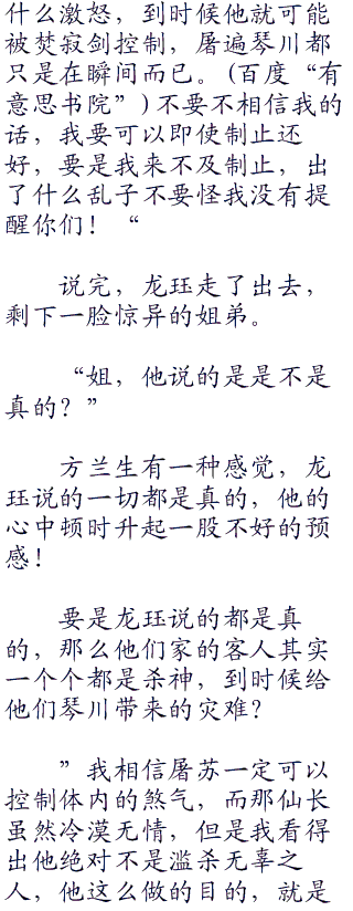 “不错,但是那说的只是一般的外物而已,龙渊部落铸造的七把绝世凶剑岂是他物,他们爆发出来的力量,足以对抗传说中的仙神。一旦持剑者被操纵成傀儡,爆发的威力也非普通的修士可以抗衡!足以在整个天下引起一片腥风血雨。
