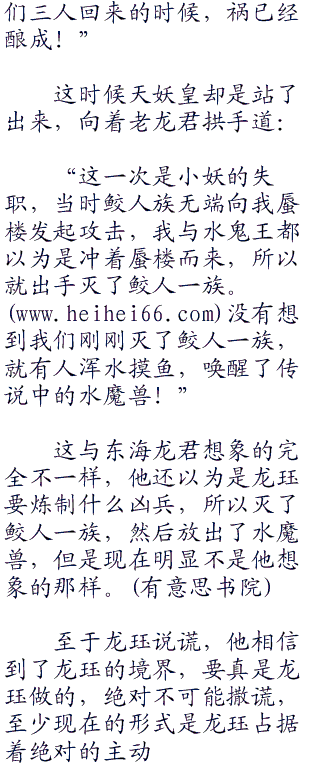 想到水鬼王所言,他们正是被拜月利用了,所以才无端与守护水魔兽封印的鲛人族厮杀起来。