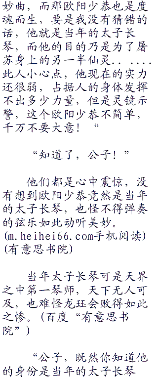 他在深海中根本就没有听过几曲琴音,刚刚只是觉得好听而已,却是没有觉察到什么?