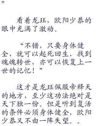 抓药,一根金针下去,什么药都不需要了,只有几个不相信龙珏的人来找欧阳少恭复诊,但是最后的结果还是一样,痊愈!