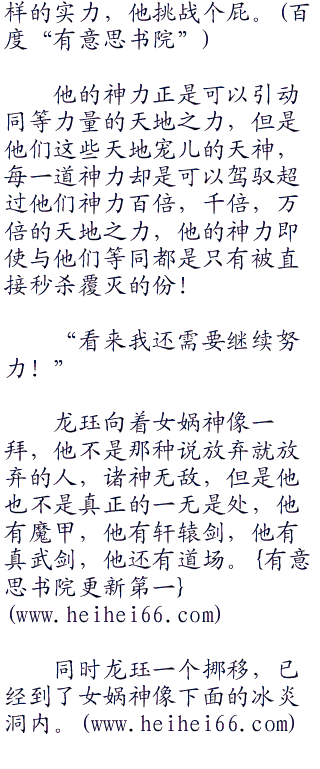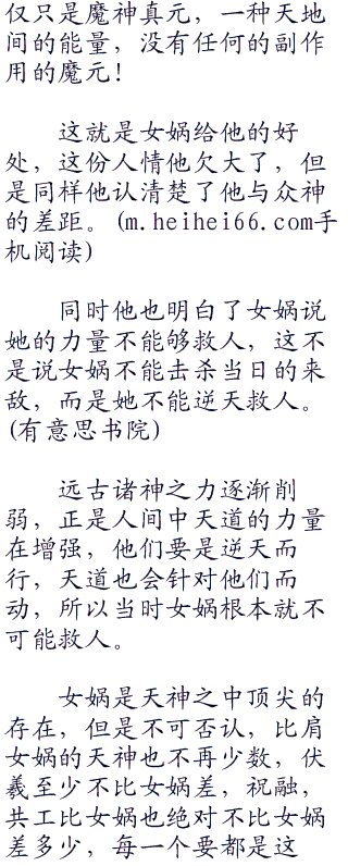 “他门是我的孩子,我又岂能不想救他们。但是天道循环,人界的力量正在不断地壮大,诸神的神力已经在人间正逐渐消退,即使我现在也只能与你对话而不能救人。你也一样是我的孩子,我能够感觉到一场浩劫不远了,今天我来见你是希望你能够阻止这一场浩劫的发生,你能够来到这里,质问苍天,说明你的心依旧是人,不是魔!“