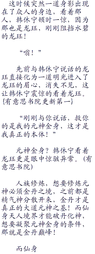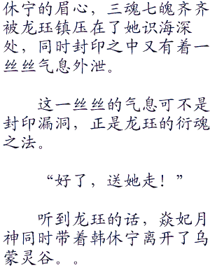 乌蒙灵谷之内,龙珏刚刚把那小女孩的两魂七魄融合韩休宁未转世的魂念,然后一起灌入了韩休宁的体内,韩休宁就已经苏醒了。