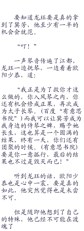 而且看着欧阳少恭,龙珏也知道他有很多的话要对他说。