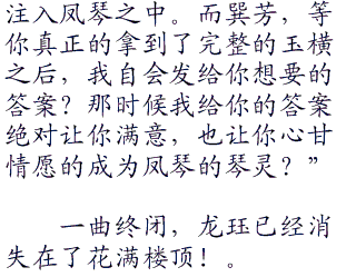 “我知道的巽芳,她是绝对不可能轻易现身的,她或许要是没有意外,你要是不疯狂的话,她是永远不会现身。你没有什么大师发生,这点只能说明她是假的,或者生命已经到了尽头,想要在死在你的怀里,你的巽芳现在如何?”