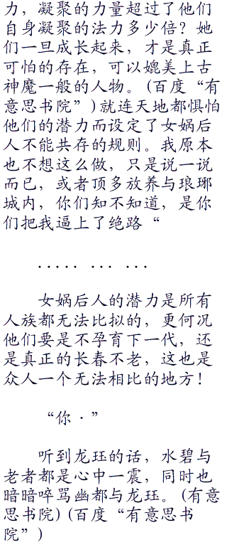 “他们的职责我自然清楚,但是正因为如此,我才感到好笑。今天来的为什么是你们,而不是她的母亲?女娲一族的那些高手呢?”