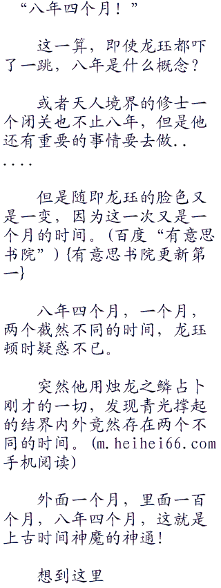 时光变迁,龙珏不知道这样已经过去了多长时间,但是他知道很长,比他历经的岁月还要长上无数倍,他感到已经将自己以前的记忆遗忘了,甚至他都将一切已经已经忘了,沉浸在烛龙之灵或者朱龙之鳞的记忆中!