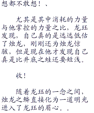 但是最后龙珏还是不知道烛龙死了没有,虽然有烛龙之灵为证,但是烛龙乃是远古无上神魔,不可以常理度之!