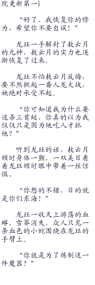 回身来到蜃楼,看着此时不敢相信的敖云月,他杀四海水族,即使杀得再多,只要四海龙君不死,依然动摇不了海族的元气。