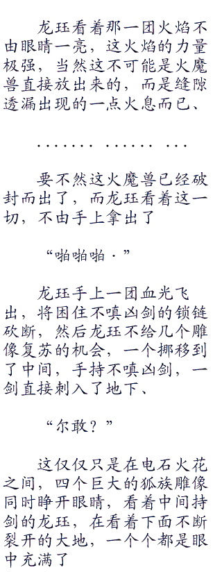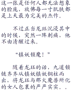 “我给你足够的自由,你也必须听我吩咐,要是你不识趣,我就会像是寻常的坐骑一样,将你打回真身,然后用血魂锁环与鼻尖所在那柱子上,待我骑时才放于你!”